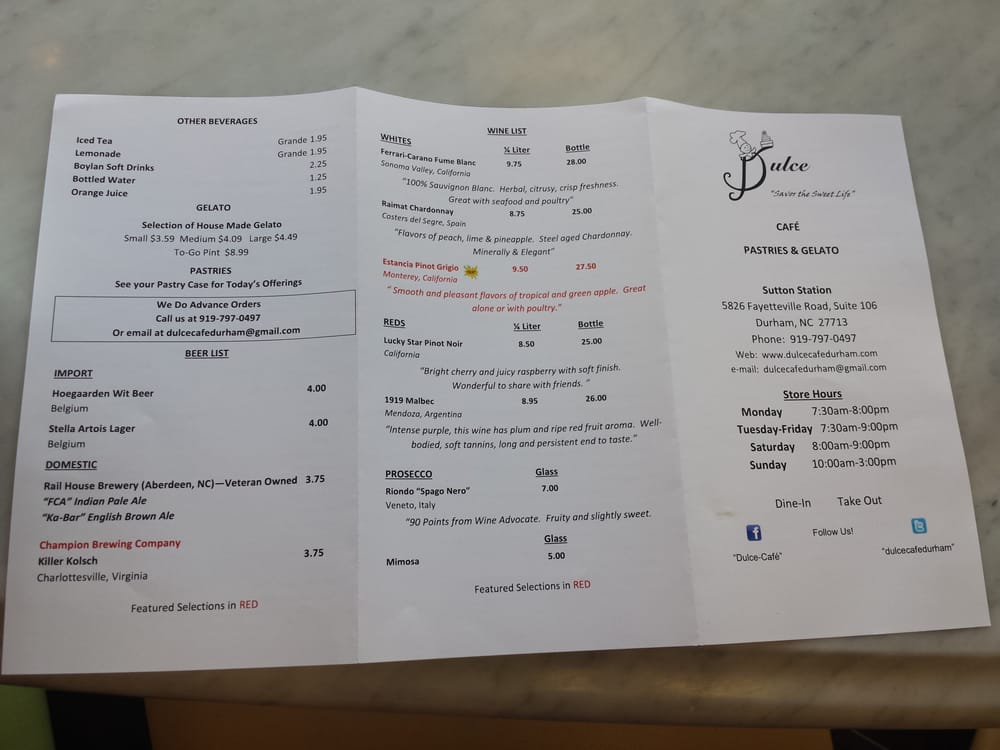 Introducing Dulce Cafe, a dessert haven located in Durham, NC, offering a delightful menu of pastries, coffee, tea, sandwiches, and salads. This cozy cafe provides a classy yet casual dining experience with options for outdoor seating, catering, and group gatherings. Customers rave about the beautifully made pastries and delicious desserts, emphasizing the perfect balance of flavors without being overly sweet. The breakfast offerings, such as the Breakfast Burrito and Yogurt Parfait, are popular choices among patrons. The variety of salads like Cobb Salad and Tarragon Chicken Salad showcase fresh ingredients and delicious dressings. With friendly staff, a welcoming atmosphere, and unique dessert creations like the mushroom-shaped pastry, Dulce Cafe is a must-visit for those seeking a memorable dining experience.